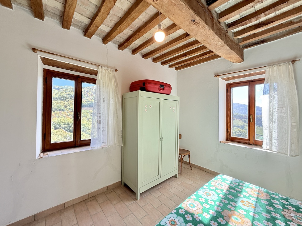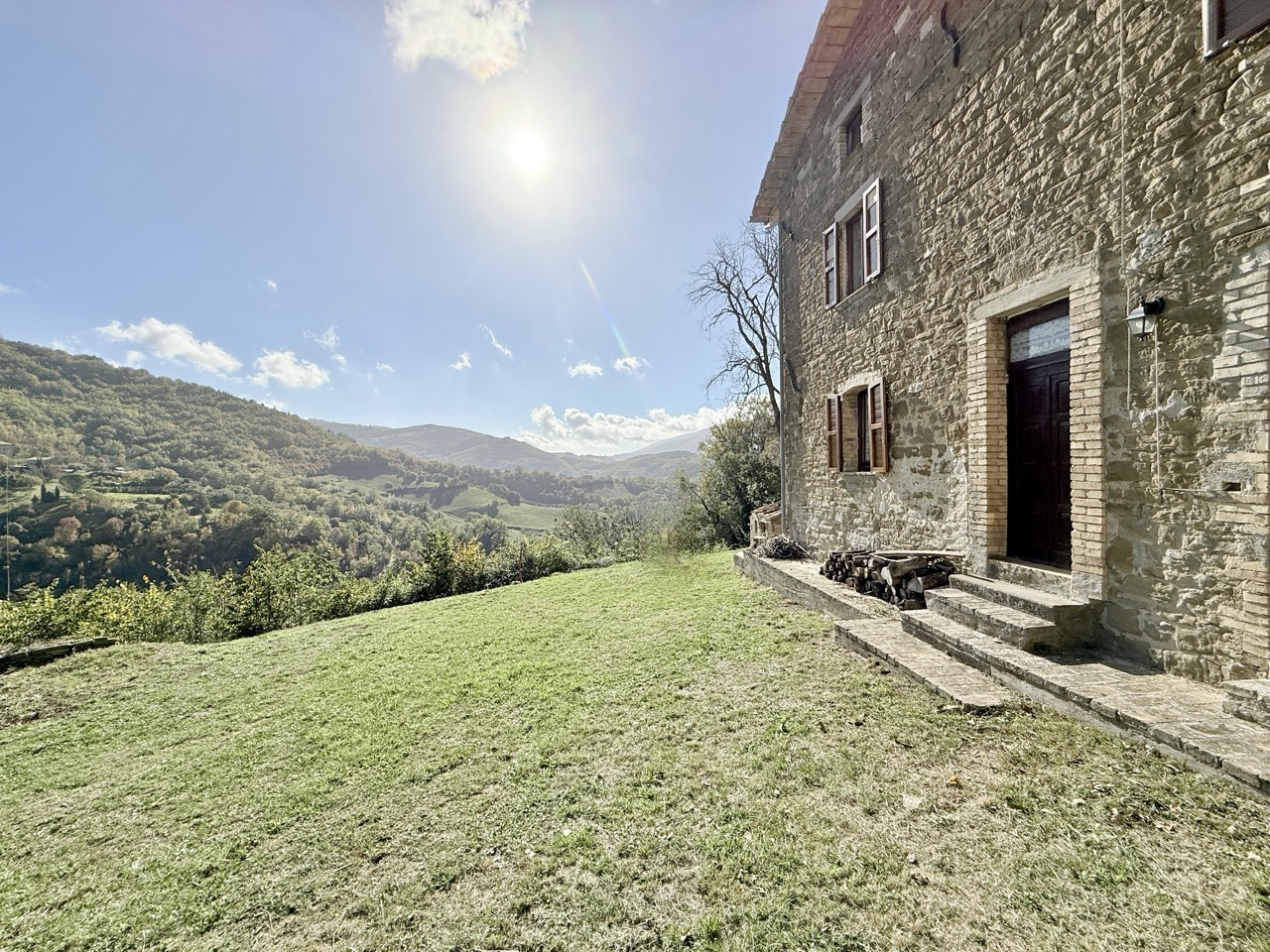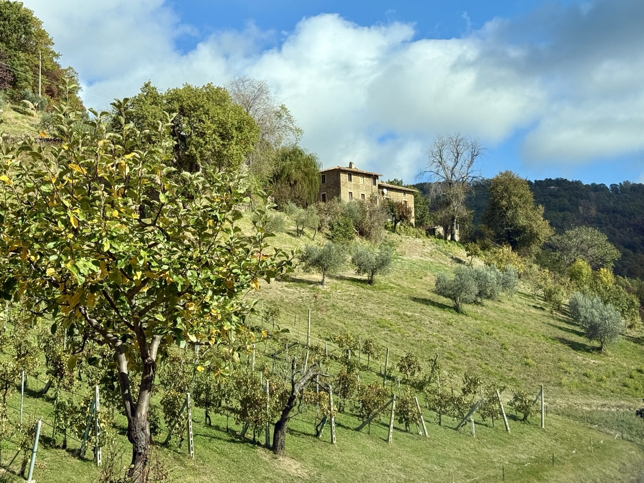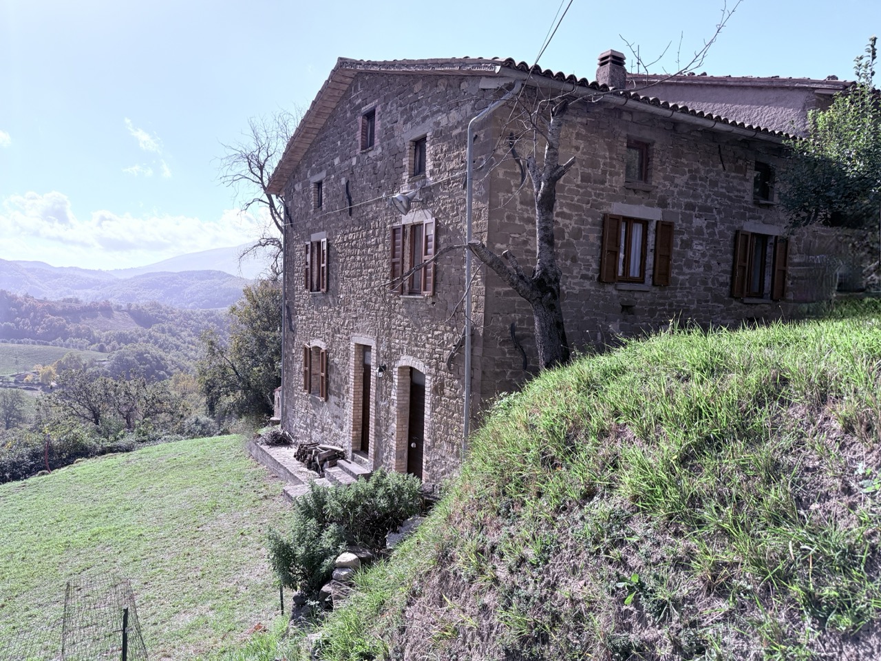 Nel verde paesaggio collinare nei pressi di Assisi si trova questo affascinante casale parzialmente indipendente, circondato da circa 11 ettari di terreno di proprietà, tra oliveti, bosco e terreni che si estendono fino al fondo valle.