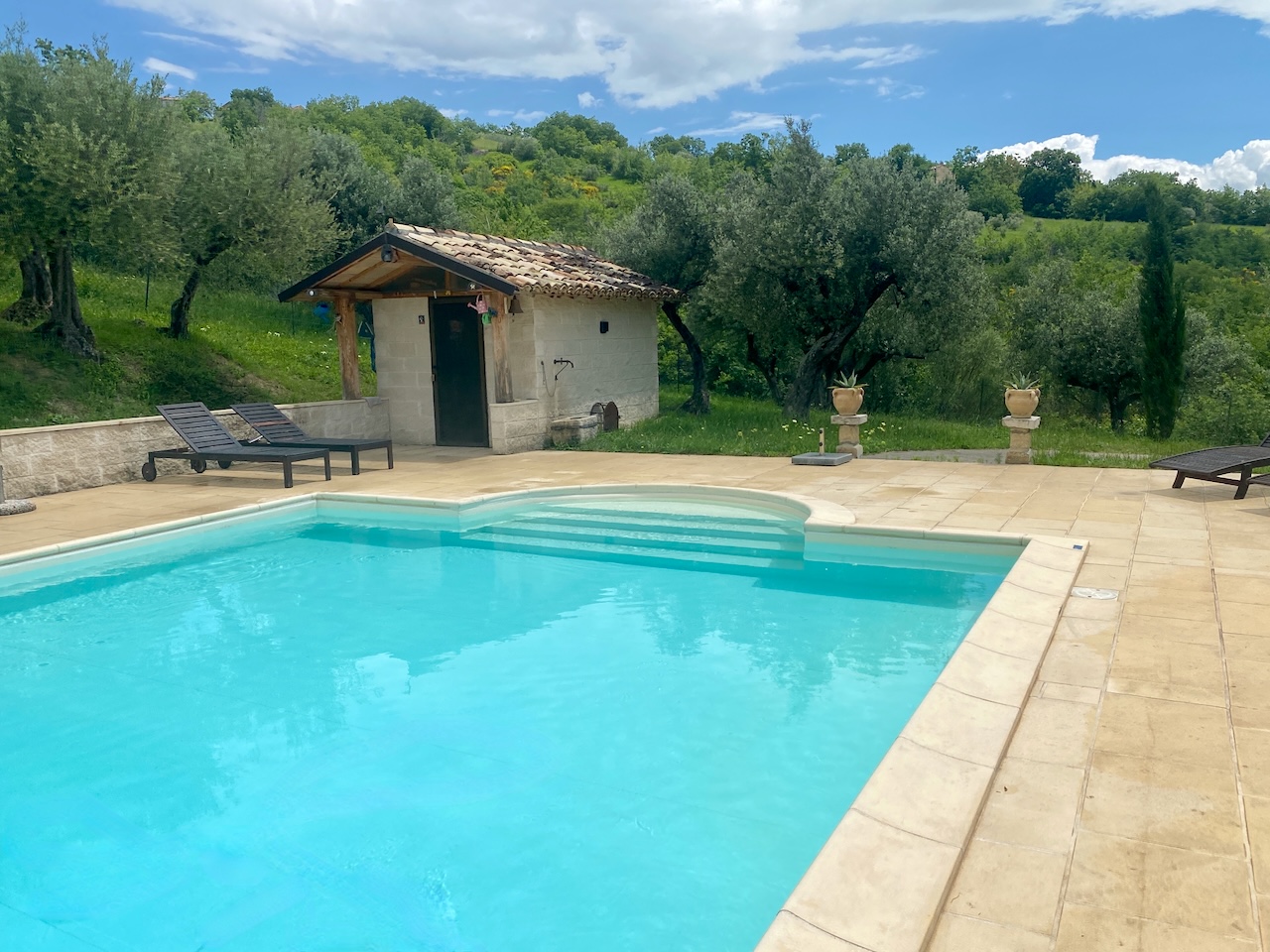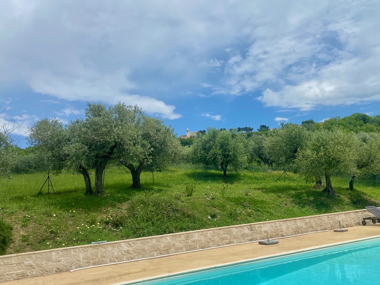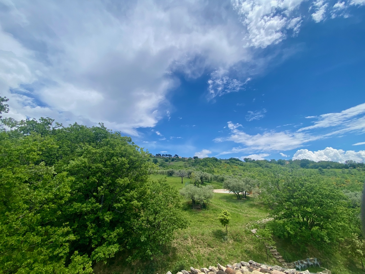 122.950 m2 di terreno circondano la casa, con 200-300 ulivi e seminativi e bosco. Il prato intorno alla piscina ha un impianto di irrigazione. |