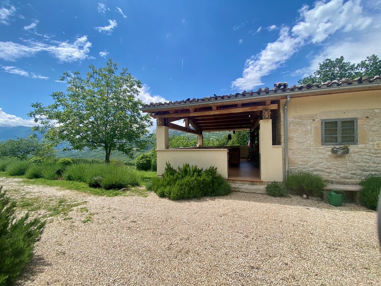 La casa è stata costruita 10 anni fa ed è in ottime condizioni, conforme alle norme anti-sismiche, con un sistema di riscaldamento a gas, a pavimento in gran parte dell'abitazione e in parte anche con accoglienti caminetti o stufe a legna, finestre nuove con doppi vetri e persiane interne, zanzariere e barre di sicurezza, porta d'ingresso blindata e tetto coibentato. Sistema d'allarme con telecamere. |