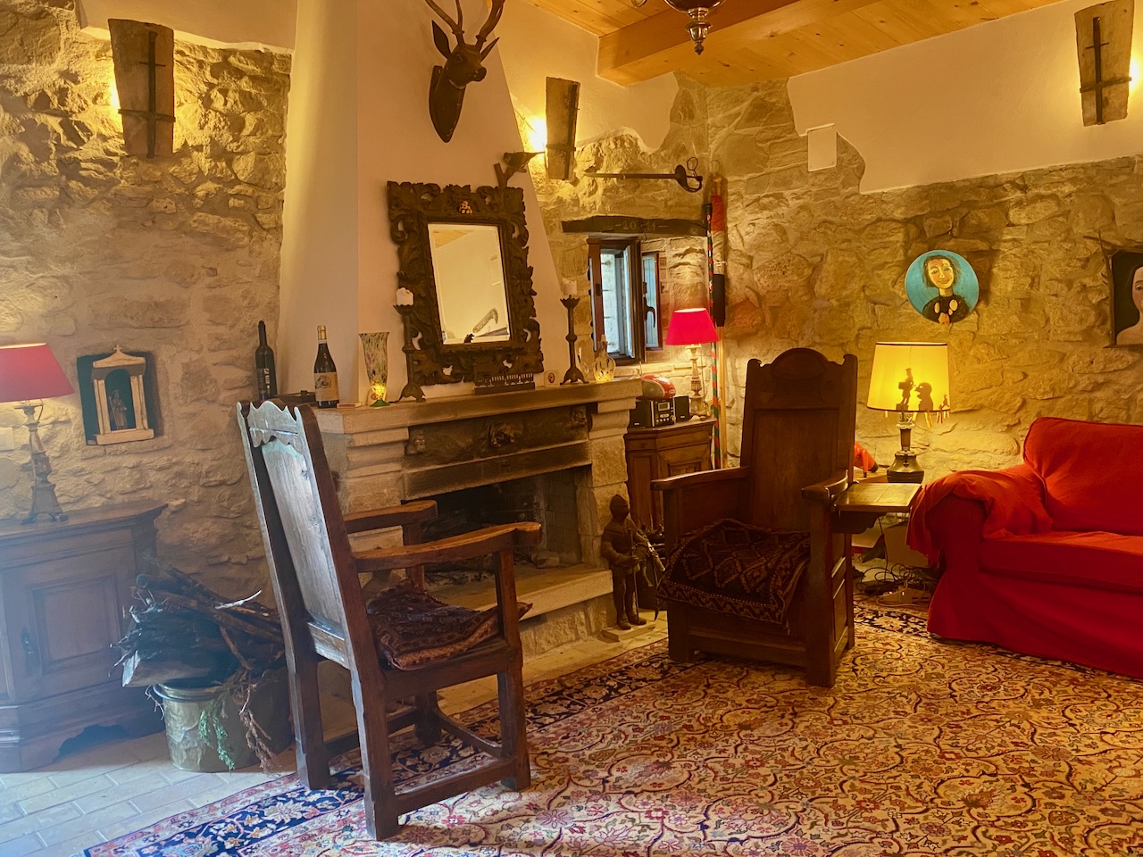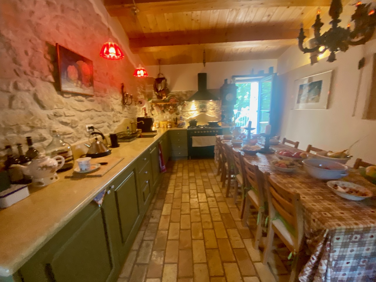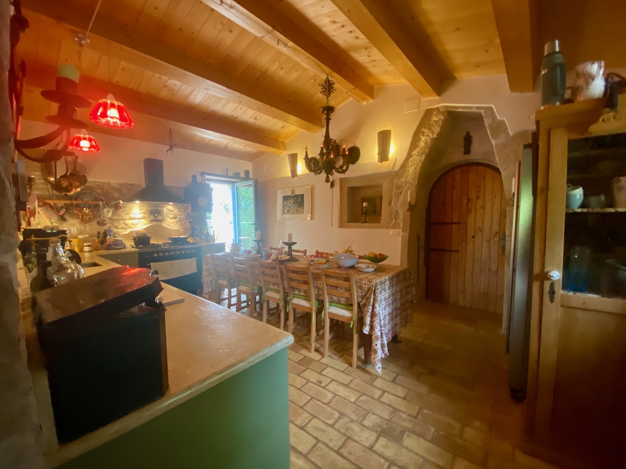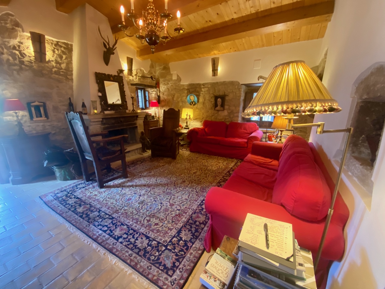 Siete alla ricerca di una casa da favola immersa nella natura incontaminata dell'Italia centrale? Questa casa con la sua bella torre si trova vicino a Pietranico, in Abruzzo, nella provincia di Pescara. L'antica casa del 1709 è stata completamente ristrutturata ed ampliata 10 anni fa (quindi tutti gli impianti sono in ottimo stato) in stile medievale, con muri in pietra a vista, travi in legno e molte caratteristiche autentiche, che ti daranno la sensazione di vivere in un vero castello antico! La casa è anche arredata con molto gusto con mobili antichi: attraverso la veranda con il suo lungo tavolo e la splendida vista sulle montagne si accede al salotto con camino, comodi divani e troni in legno, e poi attraverso il passaggio in pietra si arriva alla cucina molto accogliente con un piccolo balcone sul davanti, ideale per godersi il panorama con una tazza di caffè al mattino. Si accede inoltre alla torre con una camera da letto e un bagno su ogni piano, mentre al piano terra ci sono 4 camere (con accesso al giardino) che la famiglia utilizza quando i nipotini vengono a trovarli, e 2 bagni.