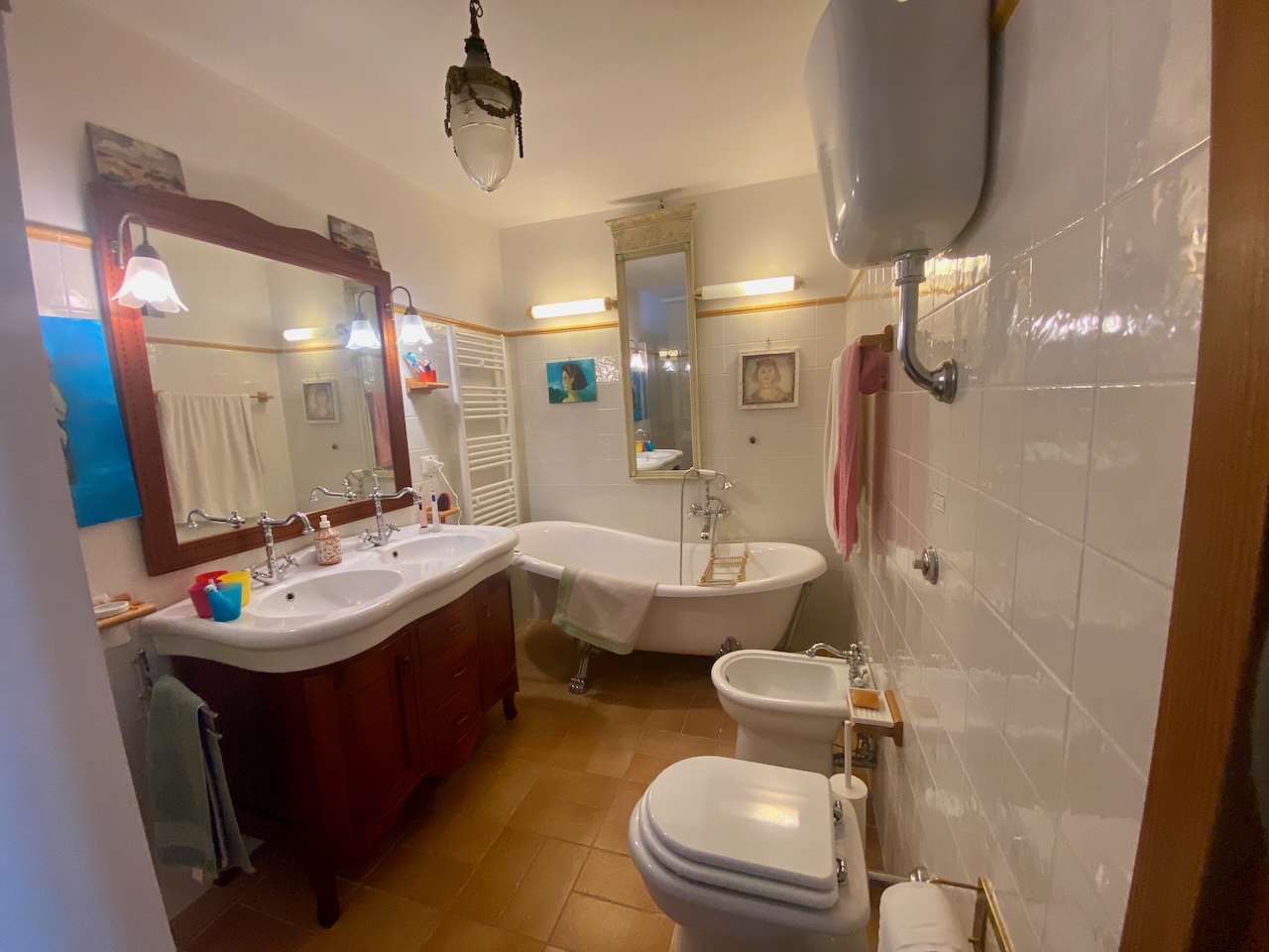 4 vani con uscita all'esterno (utilizzati come camere da letto), 2 bagni di cui 1 con vasca su piedini e doccia, uno spazio per la lavatrice. |