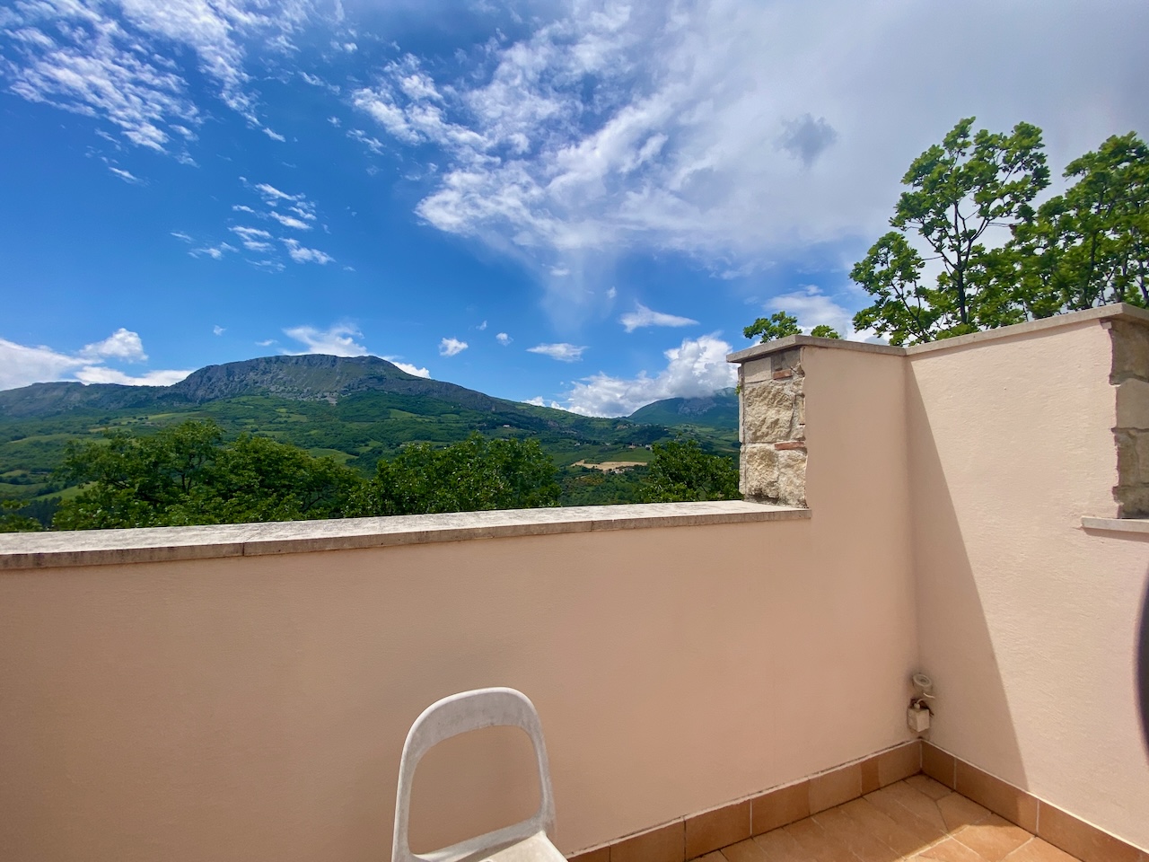 In cima alla torre si trova la terrazza sul tetto, con una vista fenomenale sulle montagne dell'Abruzzo!