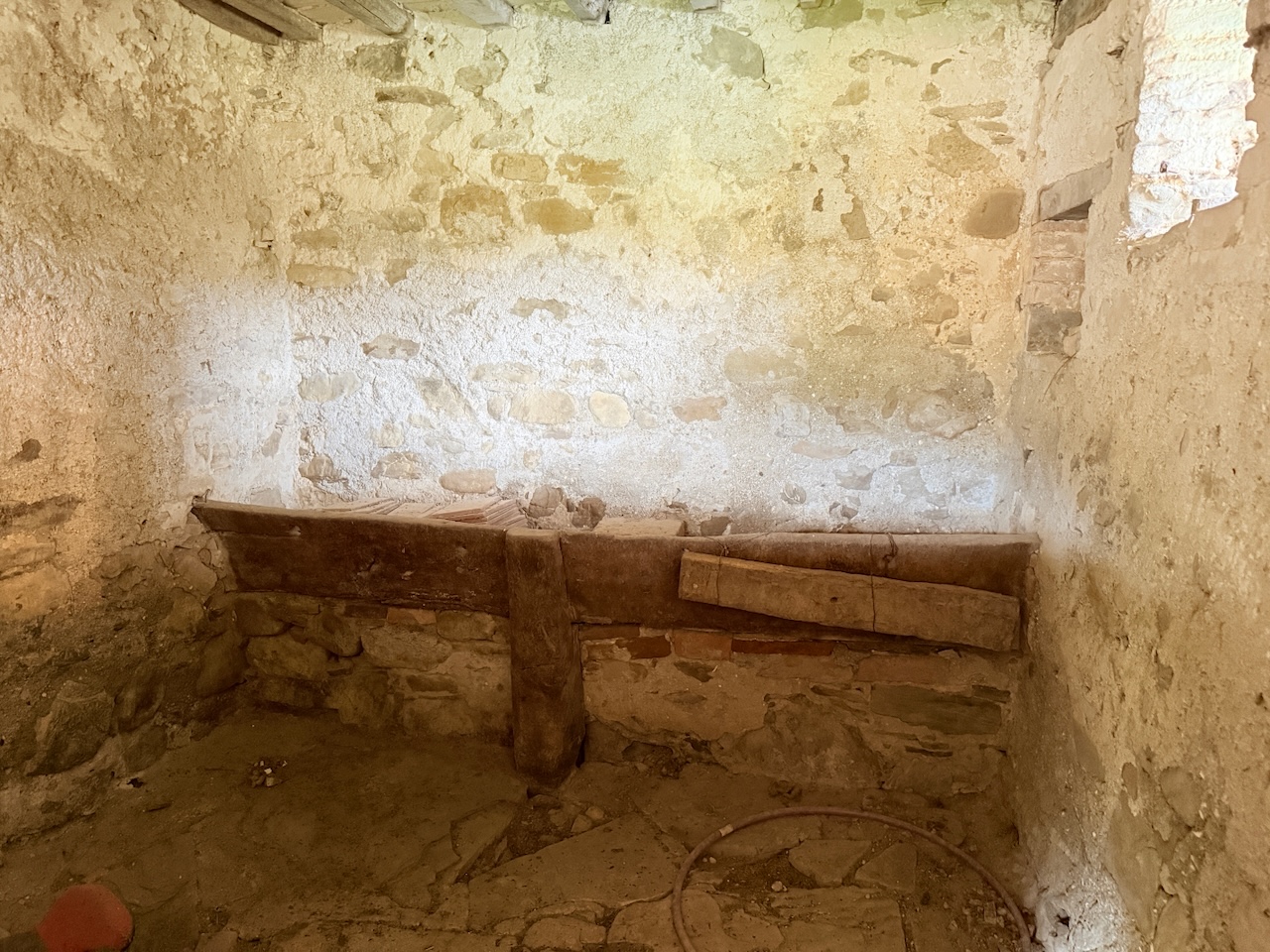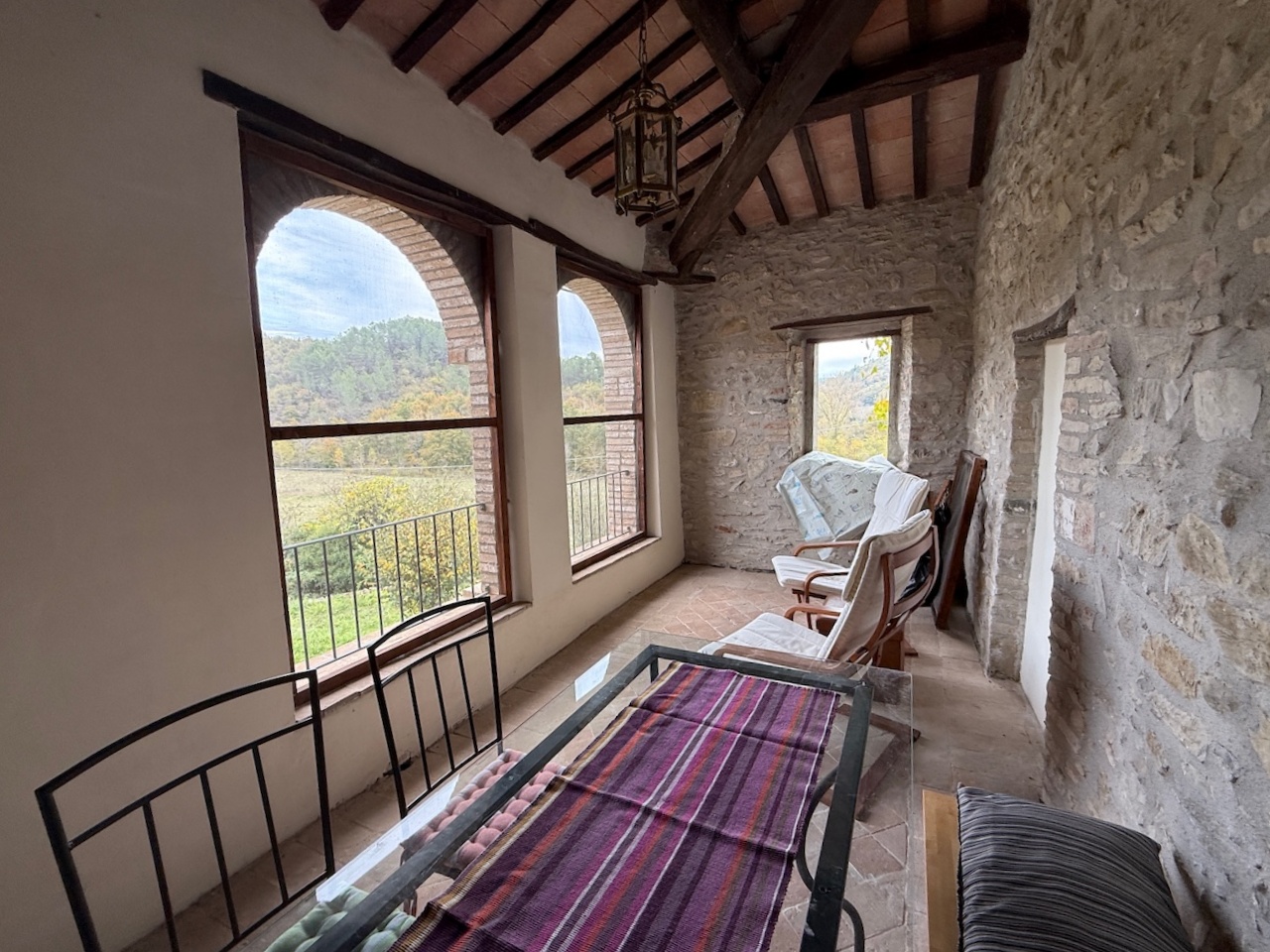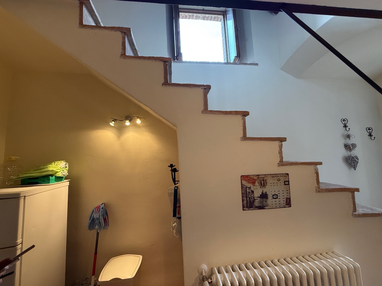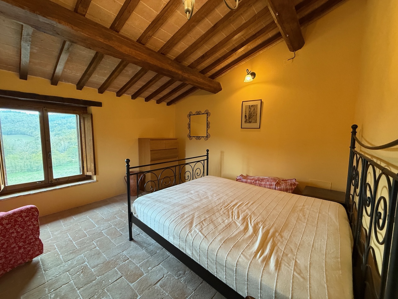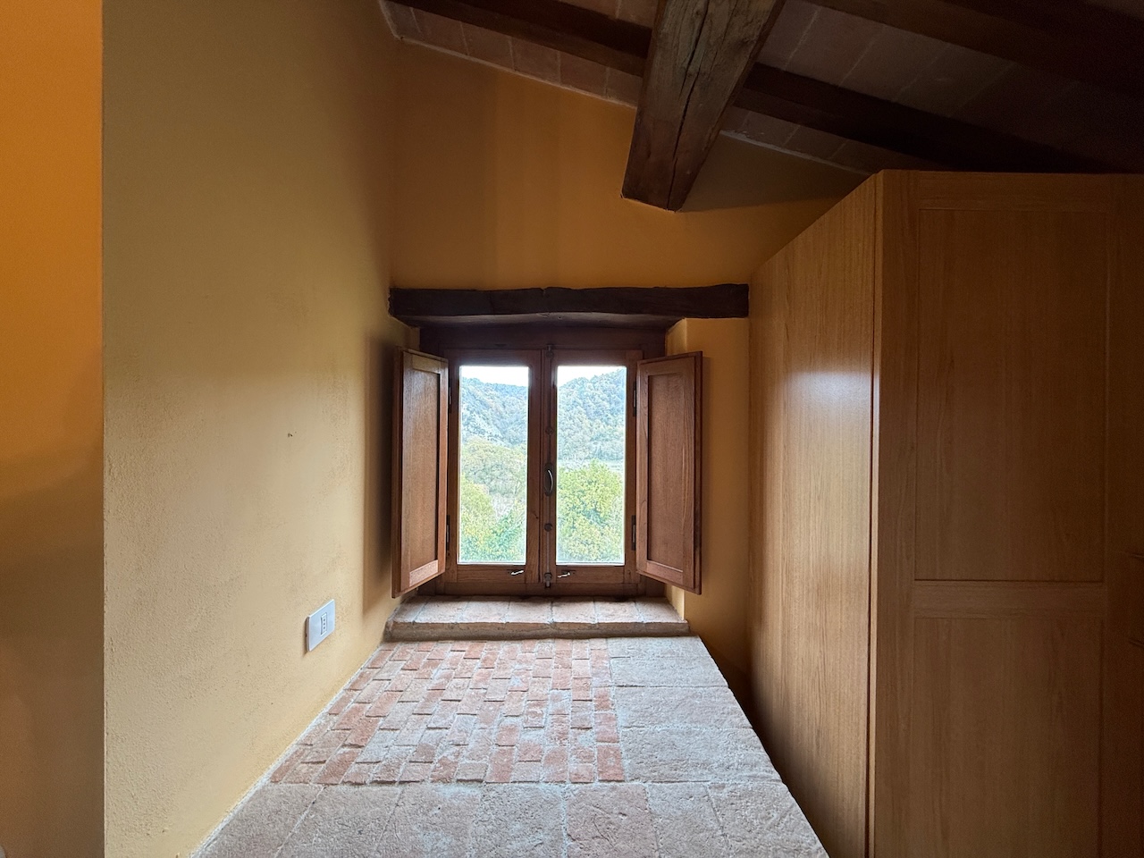 All’interno sono stati mantenuti le travi originali, le nicchie e i pavimenti in cotto, mentre gli impianti tecnici sono stati completamente rinnovati. La casa è dotata di termosifoni per il riscaldamento e di due camini – uno al primo e uno al secondo piano – che garantiscono un’atmosfera calda e accogliente anche in inverno.