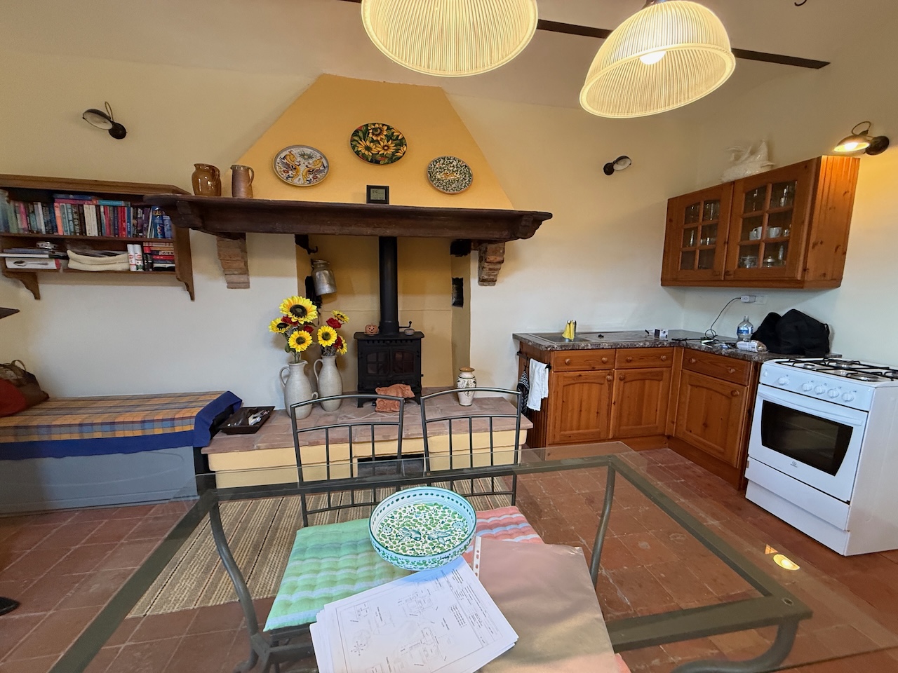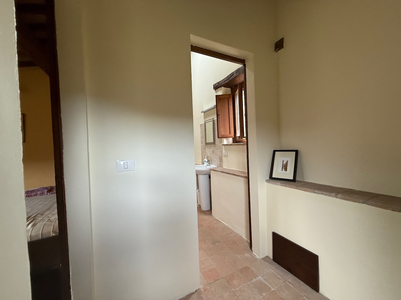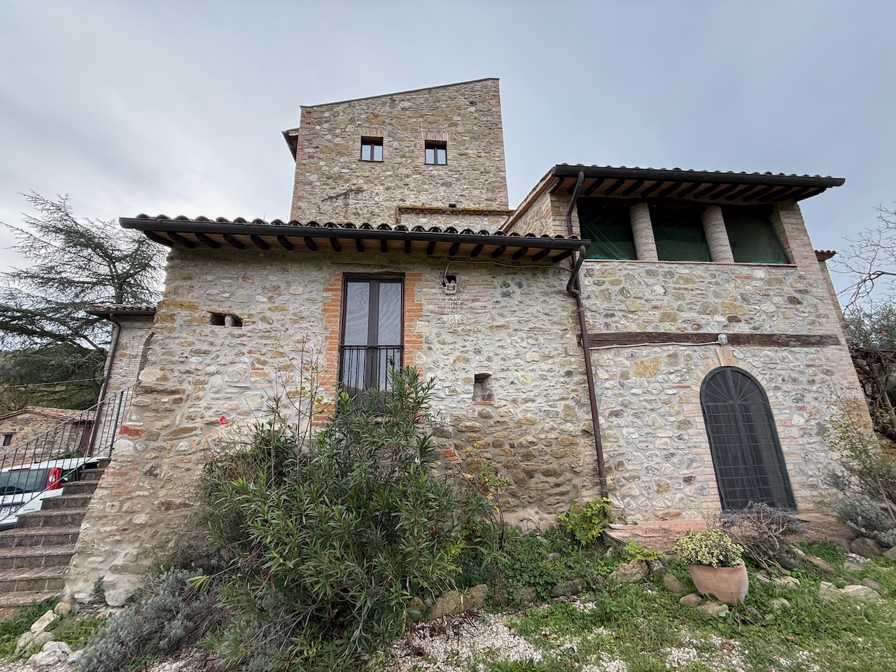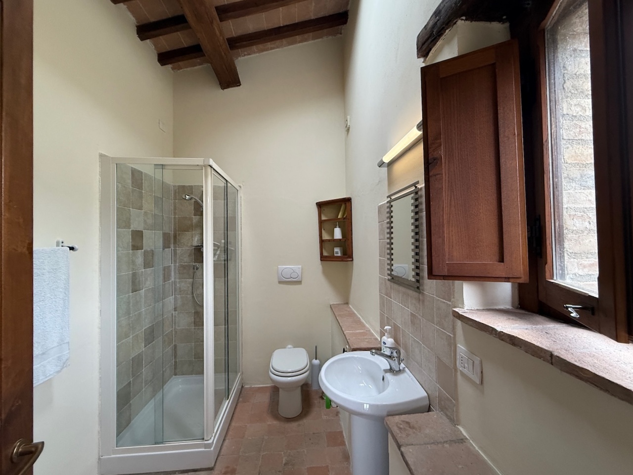 All’interno sono stati mantenuti le travi originali, le nicchie e i pavimenti in cotto, mentre gli impianti tecnici sono stati completamente rinnovati. La casa è dotata di termosifoni per il riscaldamento e di due camini – uno al primo e uno al secondo piano – che garantiscono un’atmosfera calda e accogliente anche in inverno.
