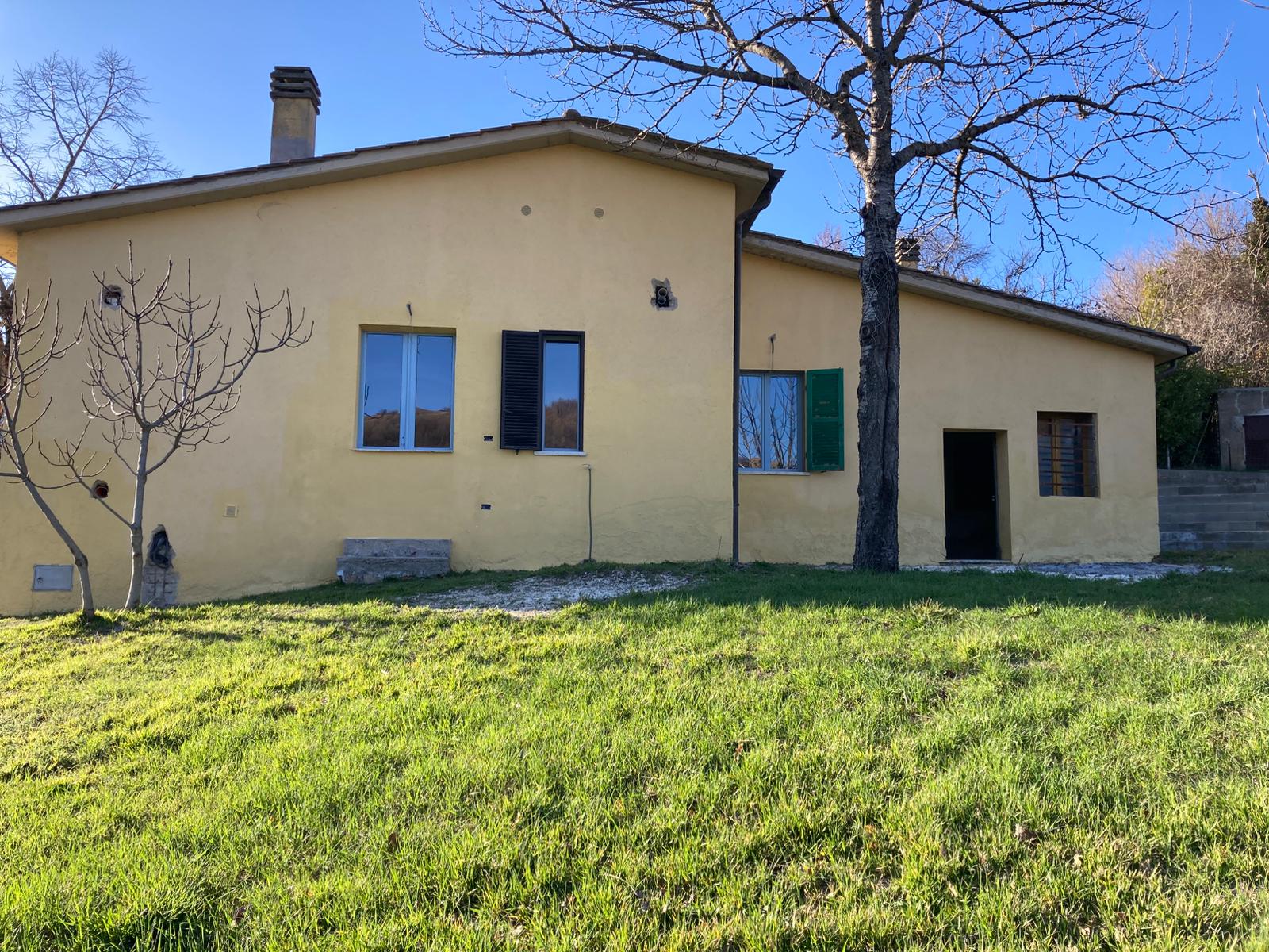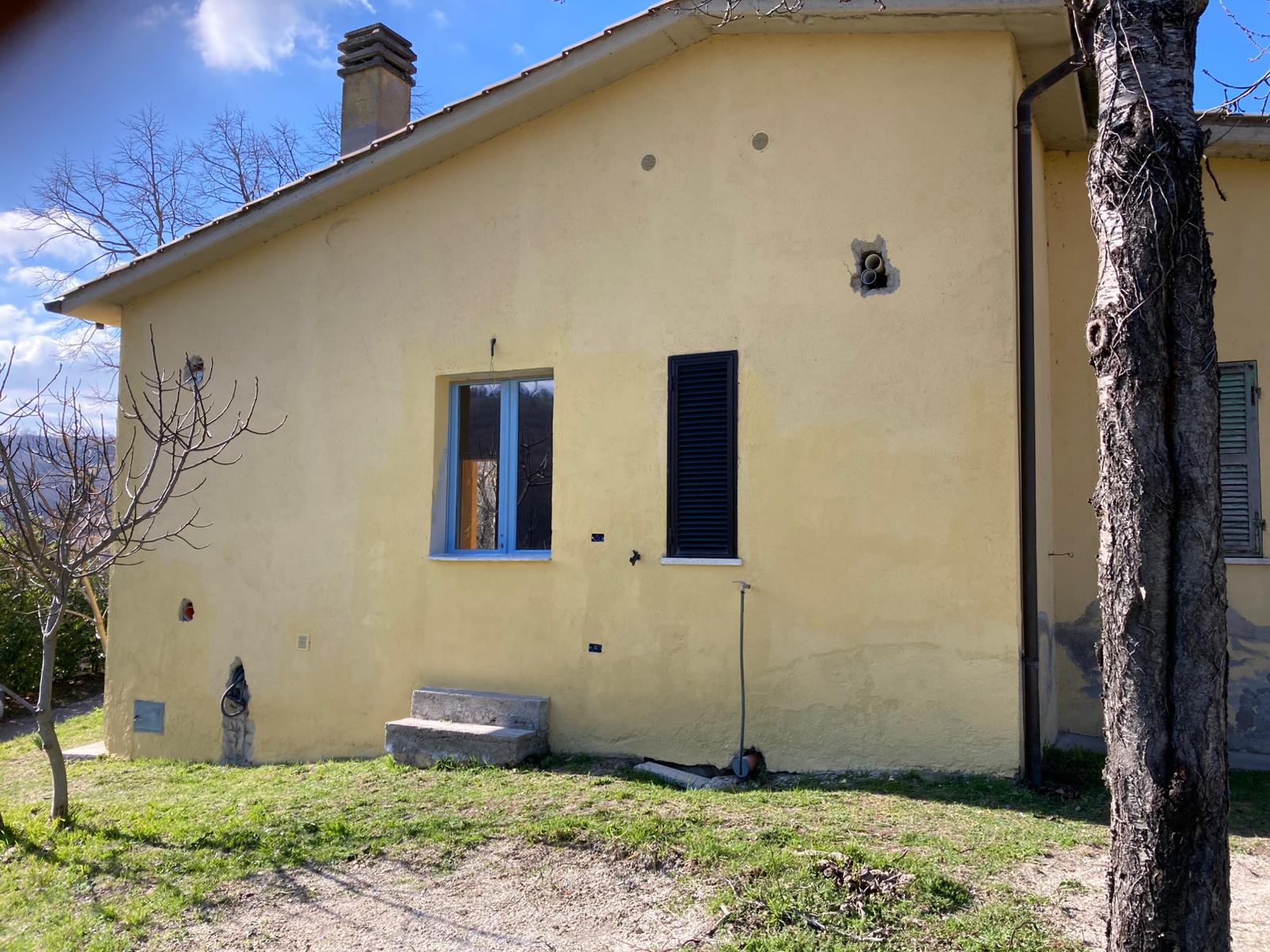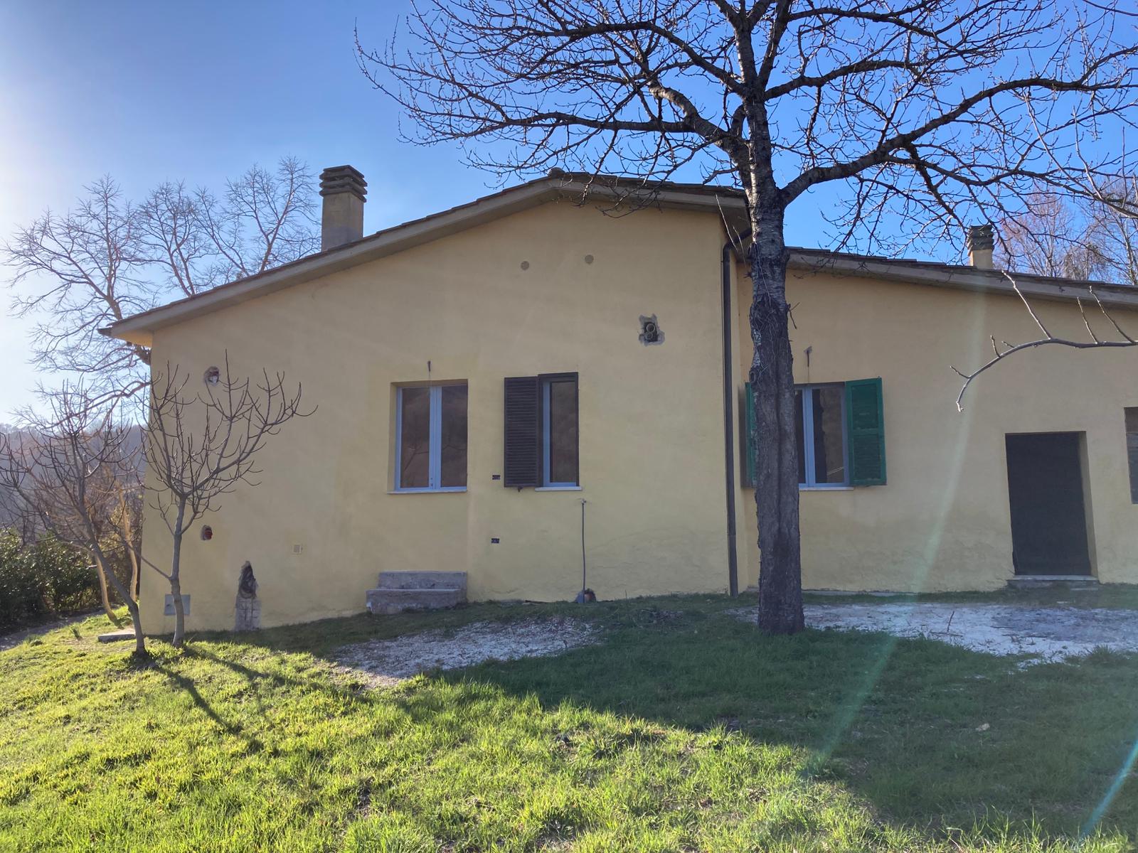 In una tranquilla posizione di campagna a Valfabbrica si trova questa casa semi-indipendente con giardino soleggiato, splendida vista su uliveti, campi verdi e colline, e un pratico garage. Un luogo ideale per chi cerca la tranquillità della campagna, a breve distanza da Assisi, Gubbio e Perugia.