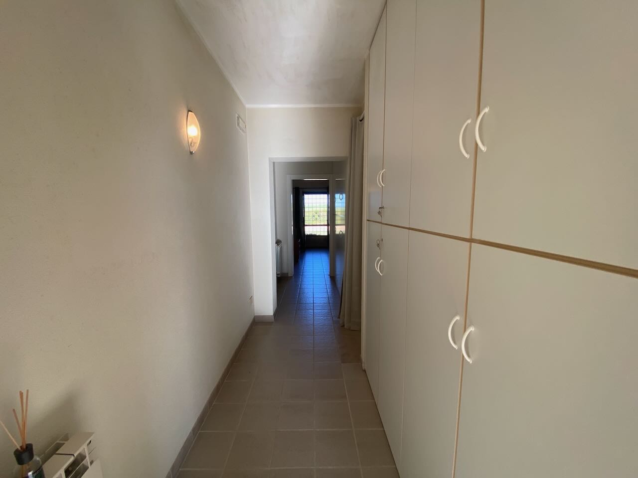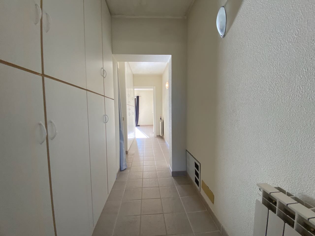Una camera con balcone, l'altra con bagno privato, e armadi a muro lungo tutto il corridoio. |
