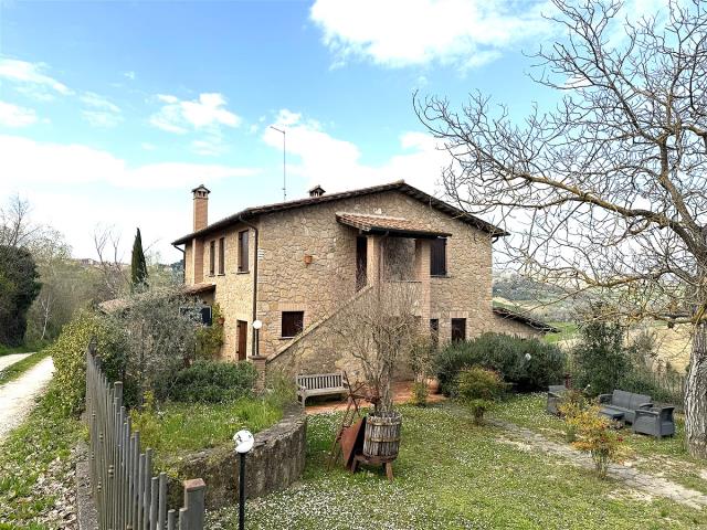 Nel verde paesaggio collinare nei pressi di Assisi si trova questo affascinante casale parzialmente indipendente, circondato da circa 11 ettari di terreno di proprietà, tra oliveti, bosco e terreni che si estendono fino al fondo valle.